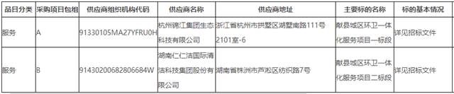 2018年12月27日,河北省獻縣城區(qū)環(huán)衛(wèi)一體化服務(wù)項目發(fā)布中標公告。錦江生態(tài)斬獲A包,中標金額為1036.33萬/年,服務(wù)期限3年。