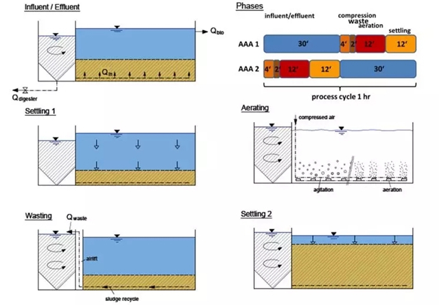 為什么他可能會有此頓悟?正如Wett博士在視頻所說,AAA是Alternating Activated Adsoprtion的縮寫,也就是交替活性吸附。首先它由兩個交替運行的反應(yīng)池組成,當AAA-1池在排泥的時候,AAA-2池會經(jīng)歷一個進水、曝氣和靜置濃縮的循環(huán)。其次它不是一個普通的初沉池,而是一個生物吸附工藝。傳統(tǒng)的初沉池只能去除三分之一的有機質(zhì),而這種沉淀池設(shè)計的COD捕獲率至少60%。
