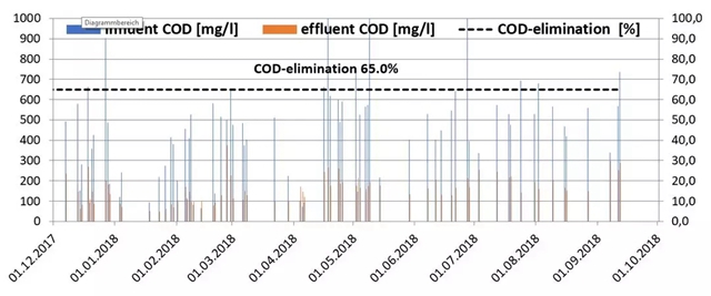 位于德國的一個AAA沉淀池的COD和N的去除情況