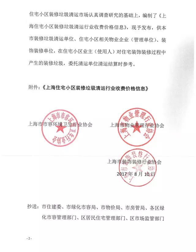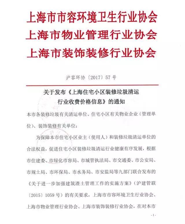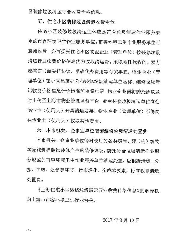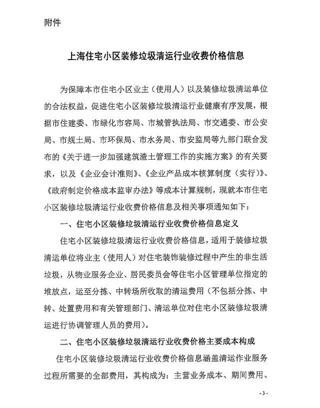 《上海市住宅小區(qū)裝修垃圾清運(yùn)行業(yè)收費(fèi)價(jià)格信息》全文內(nèi)容如下: