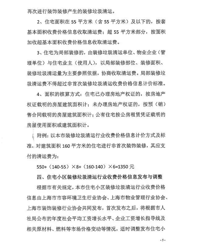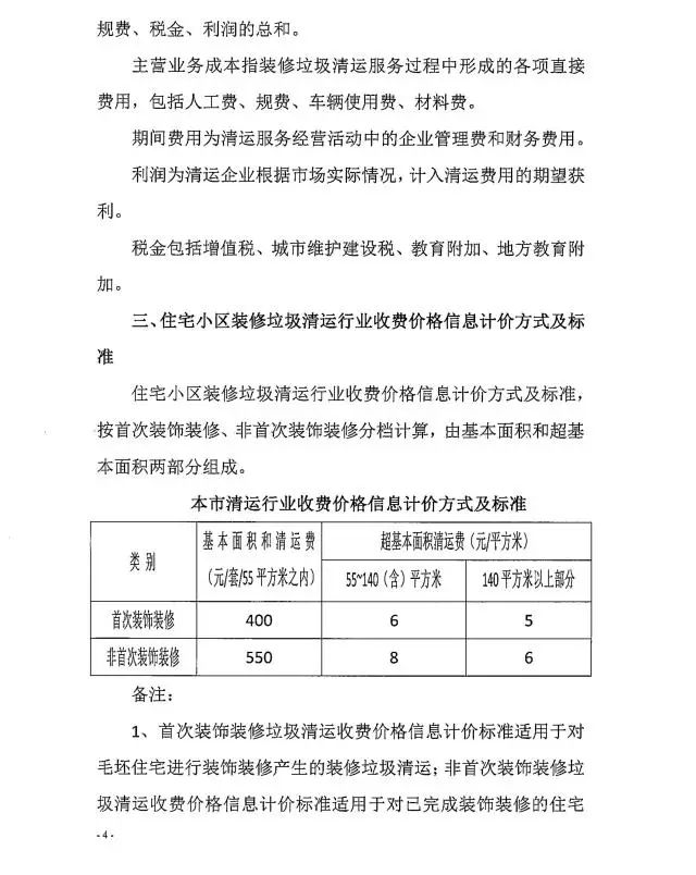 8月17日,《上海住宅小區(qū)裝修垃圾清運(yùn)行業(yè)收費(fèi)價(jià)格信息》(下稱《價(jià)格信息》)公布,《價(jià)格信息》明確了住宅小區(qū)裝修垃圾清運(yùn)行業(yè)收費(fèi)價(jià)格信息的定義,明確收費(fèi)價(jià)格主要成本構(gòu)成、計(jì)價(jià)方式、標(biāo)準(zhǔn)以及收費(fèi)主體。住宅小區(qū)裝修垃圾清運(yùn),根據(jù)首次和非首次裝飾裝修、基本面積等標(biāo)準(zhǔn)計(jì)價(jià),此外,機(jī)關(guān)、企事業(yè)單位裝飾裝修垃圾清運(yùn)處置費(fèi)將根據(jù)清運(yùn)、分揀等環(huán)節(jié),按市場化、全成本要素,協(xié)商收取。