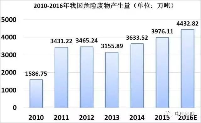 2016年,危廢真正實(shí)現(xiàn)集中處置的比例估計(jì)不到35%;2017年,危廢產(chǎn)生量預(yù)計(jì)超過6000萬噸,危廢處理市場挑戰(zhàn)和機(jī)遇并存。