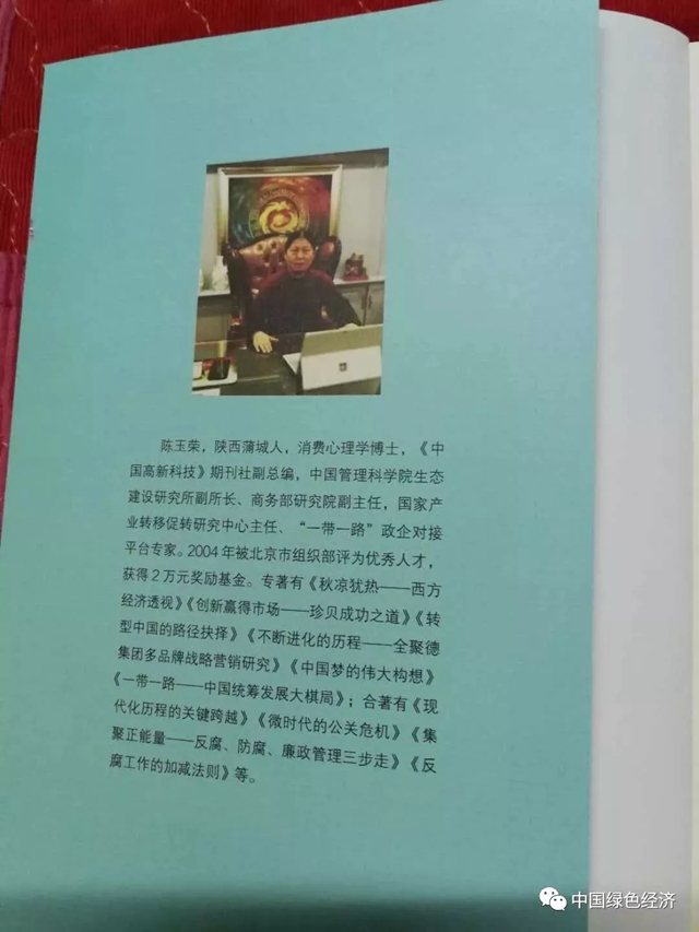 陳玉榮,消費(fèi)心理學(xué)博士、MBA工商管理碩士、經(jīng)濟(jì)學(xué)碩士,曾在原國家主席李先念同志秘書、國家統(tǒng)計局原局長李成瑞同志身邊從事過私人助理工作;在國家計委對外經(jīng)濟(jì)研究所、商務(wù)部國際經(jīng)濟(jì)貿(mào)易合作研究院、北京大學(xué)城市規(guī)劃研究所等從事過研究和頂層設(shè)計規(guī)劃等工作;在中國企業(yè)報、中國信息報和中國投資促進(jìn)雜志擔(dān)任過副主編工作;在著名民營企業(yè)匹夫品牌管理集團(tuán)、珍貝集團(tuán)、聯(lián)想集團(tuán)、國度投資集團(tuán)等從事總裁助理兼企劃部長工作等。2004年被北京市組織部評為優(yōu)秀人才稱號?,F(xiàn)任全國三農(nóng)調(diào)研中心副主任、國家產(chǎn)業(yè)轉(zhuǎn)移促進(jìn)中心高級顧問等。出版專著作品有《秋涼猶熱:西方經(jīng)濟(jì)透視》、《理想與改革:社會主義的改革歷程》、《不斷進(jìn)化的經(jīng)營:全聚德集團(tuán)多品牌戰(zhàn)略營銷》、《轉(zhuǎn)型中國的路徑抉擇》、《中國夢的偉大構(gòu)想》、《一帶一路:中國統(tǒng)籌發(fā)展大棋局》、《藍(lán)色跨越:中國海洋強(qiáng)國的生態(tài)邏輯》等;出版合著作品有:《集聚正能量:反腐、防腐、廉政管理三步走》、《現(xiàn)代化進(jìn)程的跨越:貧富差距與犯罪率》、《微時代的危機(jī)公關(guān)》、《政府反腐工作的加減法則》等書,發(fā)表關(guān)于綠色經(jīng)濟(jì)、政治、貿(mào)易、投資、管理、營銷、戰(zhàn)略規(guī)劃等論文300多篇。新近出版的《一帶一路:中國統(tǒng)籌發(fā)展大棋局》一書被國家新聞出版署列入重大選題備案,歡迎關(guān)注。