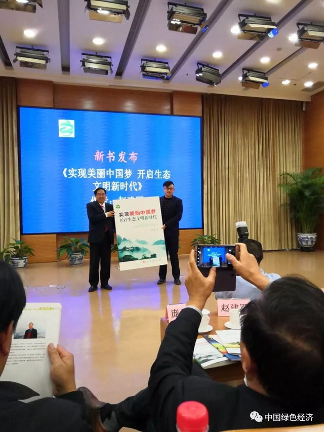 其次,大會對中共中央黨校趙建軍教授的新作——《實現(xiàn)美麗中國夢 開啟生態(tài)文明新時代》舉行了首發(fā)式。此書作為趙建軍主持的國家社科基金重點(diǎn)課題“綠色技術(shù)范式與生態(tài)文明制度研究”的階段性成果,被列為國家出版基金項目、“十三五”國家重點(diǎn)圖書出版規(guī)劃項目,由人民出版社出版。該書不僅包含生態(tài)文明建設(shè)的理論探索和解讀,還列舉了大量生態(tài)文明建設(shè)的成功案例,同時書中增加了十九大和生態(tài)環(huán)境保護(hù)大會的最新研究成果,緊扣時代發(fā)展。其中的很多見解,是作者30余年潛心研究和深入探索的升華,對廣大讀者學(xué)習(xí)和領(lǐng)會生態(tài)文明建設(shè)與“兩山”理論的重要論述、認(rèn)識和把握生態(tài)文明的深刻內(nèi)涵以及探索美麗中國夢的實現(xiàn)路徑,具有一定的啟示作用。會上,重慶武隆區(qū)委書記黃宗華講述了“兩山論”在當(dāng)?shù)氐某晒嵺`案例,并進(jìn)行了綠色智庫研究院揭牌儀式,以及首批專家的聘任儀式。