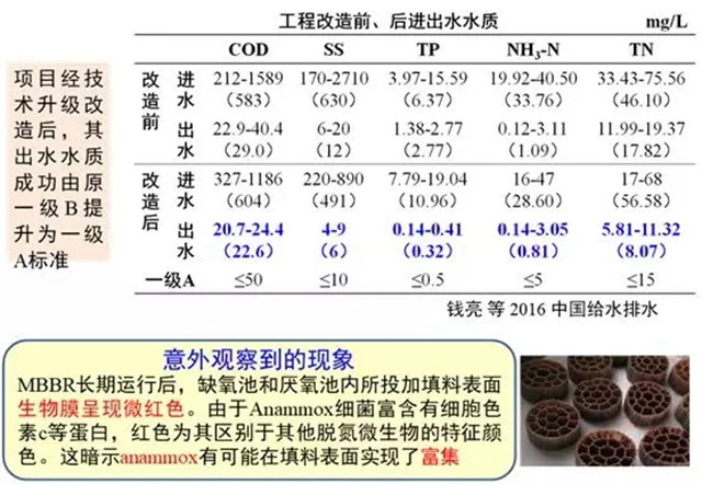 瑞典Sjölunda污水廠是全球首座采用ANITATMMox生物膜的污水廠,核心技術是MBBR,借助填料富集并長期持有厭氧氨氧化細菌。Sjölunda污水廠之后對工藝進行了改進,包括用IFAS 進行工藝改進,氨氮的去除率獲得更進一步的提升,比MBBR工藝提高了200%~300% 。