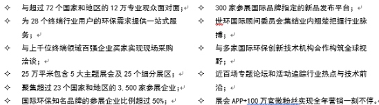 世環(huán)會(huì)作為秉承工匠精神的環(huán)保博覽會(huì)平臺(tái)承數(shù)十載國(guó)際化、專業(yè)化的海外展會(huì)優(yōu)質(zhì)背景,整合了五大國(guó)際性展會(huì),AQUATECH CHINA上海國(guó)際水展、FLOWTECH CHINA上海國(guó)際泵管閥展、BUILDEX CHINA上海國(guó)際建筑水展、ECOTECH CHINA上海國(guó)際固.廢氣展、ECOTECH CHINA上海國(guó)際空氣新風(fēng)展,已發(fā)展成為全球環(huán)保產(chǎn)業(yè)鏈一站式平臺(tái),同時(shí)精準(zhǔn)聚焦24大細(xì)分主題展示區(qū),涵蓋環(huán)保全業(yè)態(tài)垂直版塊。