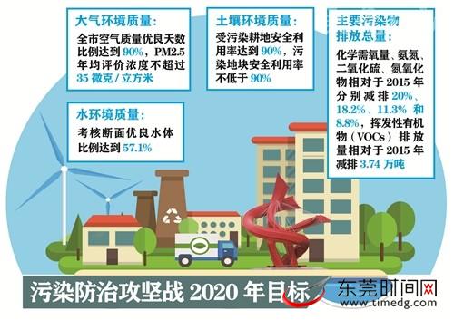 《行動計劃》為打好污染防治攻堅戰(zhàn)指明了方向,提出在水環(huán)境、大氣環(huán)境、土壤環(huán)境、城市固體廢物處置、主要污染物排放等五方面的改善計劃。到2020年,完成省下達的總量減排任務(wù),主要污染物排放總量大幅減少,生態(tài)環(huán)境質(zhì)量出現(xiàn)拐點并持續(xù)改善,實現(xiàn)環(huán)境質(zhì)量狀況、綠色發(fā)展水平、環(huán)境治理能力有力提升,為2022年環(huán)境質(zhì)量實現(xiàn)根本性改善、2035年基本實現(xiàn)社會主義現(xiàn)代化,建成美麗東莞奠定堅實基礎(chǔ)。