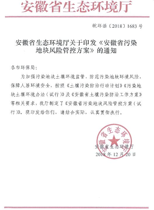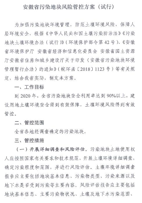 日前,安徽印發(fā)《安徽省污染地塊風(fēng)險管控方案》,旨在加強土壤污染防治。全文如下: