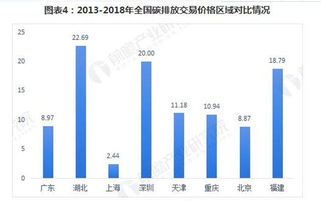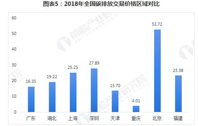 而根據(jù)前瞻產(chǎn)業(yè)研究院對2018年主要碳排放交易市場交易價格的匯總,對比過去幾年的累計(jì)可以看出,除了交易量較小的天津和重慶,其余幾個交易所的價格基本保持在23元/噸左右,其中最高的是北京碳排放交易所,達(dá)到52.72元/噸。