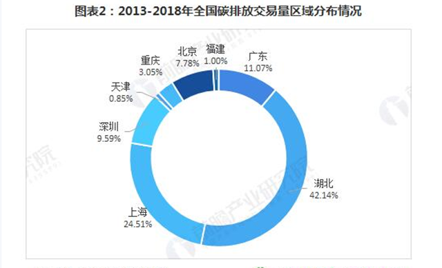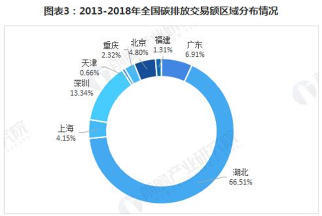 2013-2018年全國碳排放交易量區(qū)域分布情況