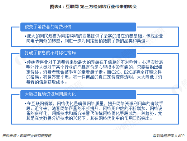 踏著互聯(lián)網(wǎng)發(fā)展的春風(fēng),我國(guó)第三方檢測(cè)機(jī)構(gòu)也開(kāi)始互聯(lián)網(wǎng)化轉(zhuǎn)型之路,積極利用大數(shù)據(jù)推動(dòng)資源利用的最大化,擴(kuò)大消費(fèi)者對(duì)于第三方檢測(cè)行業(yè)的認(rèn)知,從而擴(kuò)大下游需求的增長(zhǎng)。