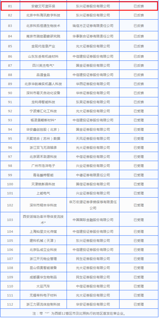 深交所創(chuàng)業(yè)板首次公開發(fā)行股票正常審核狀態(tài)企業(yè)基本信息情況表