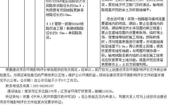 近日,江蘇省環(huán)境廳發(fā)布了擬對輸變電項目環(huán)評文件作出審批意見的公告,對項目影響環(huán)境的影響和對策提出了相應(yīng)要求,詳情如下: