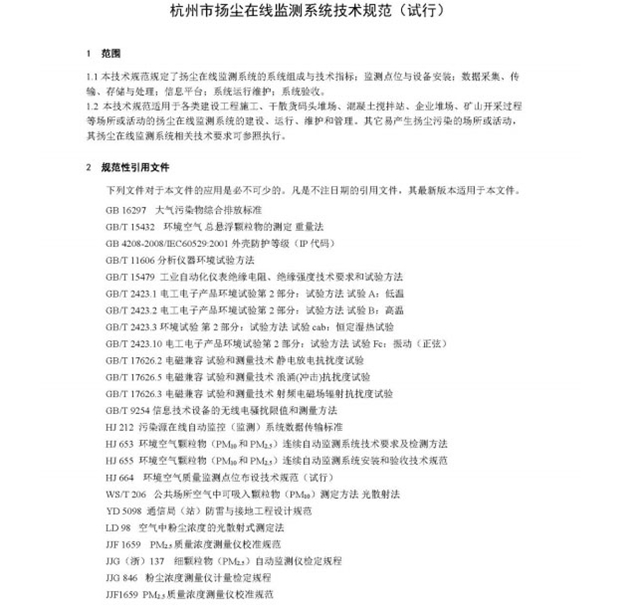 杭州市揚塵在線監(jiān)測系統(tǒng)技術(shù)規(guī)范(試行)