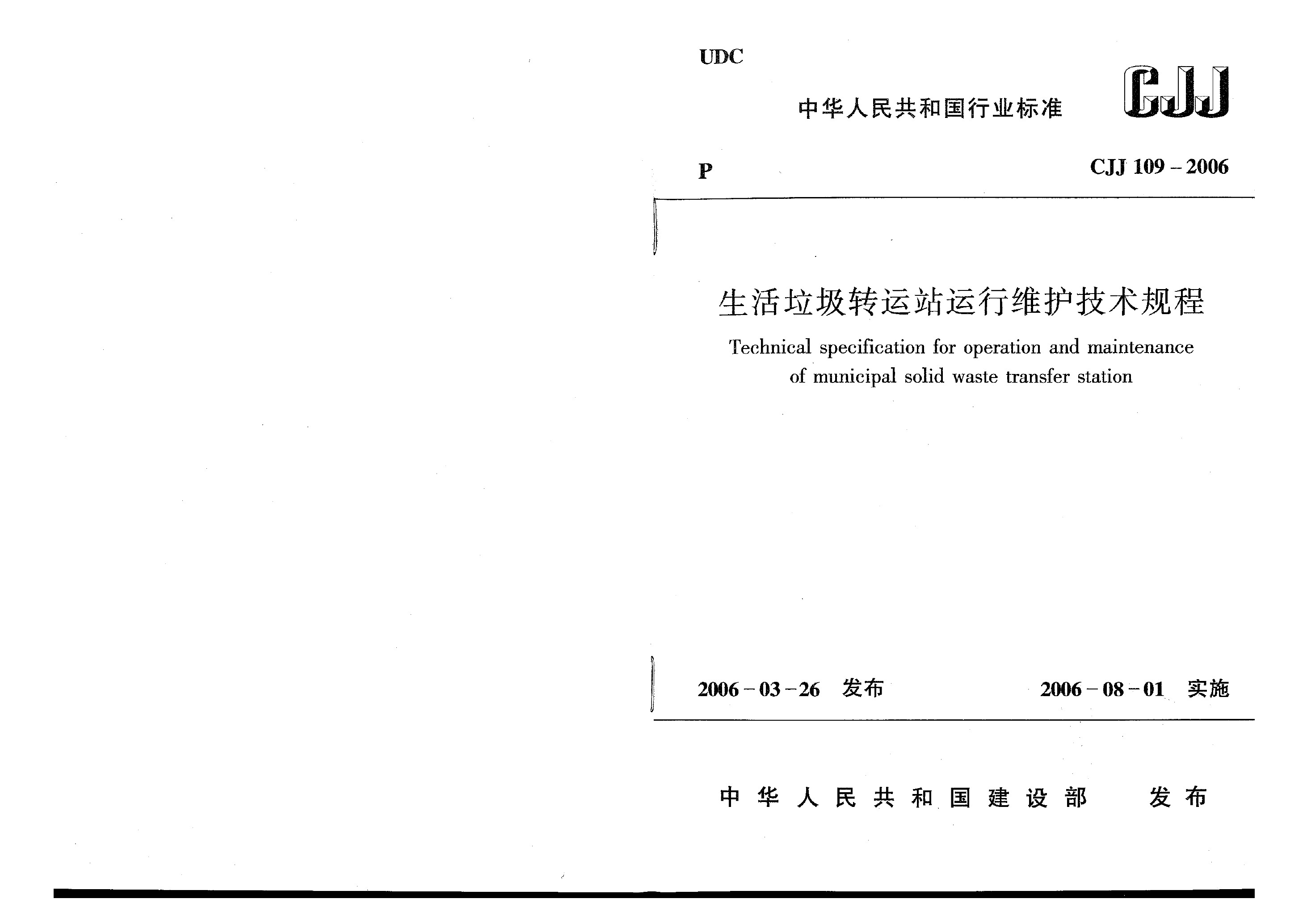 生活垃圾轉(zhuǎn)運站運行維護技術(shù)規(guī)程(CJJ 109-2006)