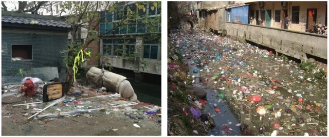 青龍河位于蘇州城北虎丘茶花村,東起山塘河,西至觀景新村,河道長約740m。河道周邊是集加工與銷售于一體的婚紗市場,沿岸小作坊密布,周邊居住大量的外來人口,據(jù)統(tǒng)計,該區(qū)域?qū)嵱腥丝谶_(dá)4萬人以上。由于社區(qū)多年未能組建管理班子,河道兩岸及周邊環(huán)境長期無有效管理,大量的婚紗廢料、居民生活垃圾被隨意拋灑在岸坡及河道內(nèi),河岸空地堆滿雜物,環(huán)境極其臟亂,不堪入目;周邊店面、小作坊雜亂無序,兩岸私搭亂建問題突出,雜樹雜草叢生,整體環(huán)境臟亂。另外,青龍河改道工程自2013年開工以來,由于幾戶居民無法拆遷,致使西側(cè)河道無法溝通,為城中村斷頭河。