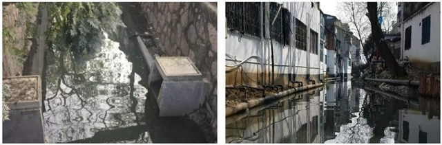 青龍河地處待拆遷中心區(qū)域,匯水面積0.35km2,區(qū)域內(nèi)無污水收集設(shè)施。自2013年虎丘地區(qū)綜合改造項目啟動以來,由于拆遷進(jìn)展緩慢,區(qū)內(nèi)規(guī)劃污水管網(wǎng)無法建設(shè)。據(jù)調(diào)查,青龍河周邊排水為雨污合流,兩側(cè)的居民生活污水直接或間接經(jīng)過化糞池下滲或經(jīng)合流管網(wǎng)最終排入到青龍河。沿岸共排查出6處較大的雨污合流排放口,在晴天均有生活污水不斷排入河道,共有直排點135處,管徑為DN50-DN300不等,兩側(cè)居民生活污水、商業(yè)餐飲污水和婚紗加工污水全部入河。