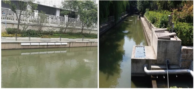 為達(dá)到消除黑臭水體目標(biāo),在“截、收、清、修、引、管”幾個(gè)方面同時(shí)用力,消除河道內(nèi)源污染,截?cái)嗯趴谖鬯?,同時(shí)引流補(bǔ)水、修復(fù)生態(tài),提升河道的自凈能力。截:完成16處河道排污口控源截污,并逐一編號(hào)、公示信息;收:匯水區(qū)域污水收集,完成雨污分流6.99km2,新建雨污管網(wǎng)113km,每天可收集污水9.1萬噸;清:清除河道淤泥垃圾約2萬m3;修:生態(tài)修復(fù),在重要河段安裝3處曝氣增氧裝置,并增加生態(tài)浮島;引:新建引水補(bǔ)水回流管道,促進(jìn)局部水循環(huán);管:對(duì)匯水區(qū)范圍內(nèi)10家重點(diǎn)排水戶全部辦理排水許可。同時(shí),沿河420個(gè)截流井溢流口均安裝防異味裝置,有效減少溢流口散發(fā)的污水異味。