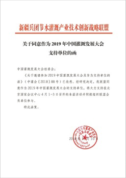 在2019年新年開篇之時,來自全國各節(jié)水灌溉聯盟及協會對中國灌溉發(fā)展大會的支持回函如雨后春筍般紛紛到達,本周之內,中國塑料加工工業(yè)協會塑料節(jié)水器材專業(yè)委員會、中國生態(tài)農業(yè)產業(yè)技術創(chuàng)新戰(zhàn)略聯盟、節(jié)水灌溉產業(yè)技術創(chuàng)新戰(zhàn)略聯盟、新疆兵團節(jié)水灌溉產業(yè)技術創(chuàng)新戰(zhàn)略聯盟、京津冀水肥一體化產業(yè)創(chuàng)新聯盟、黑龍江省智慧灌溉水肥一體化產業(yè)創(chuàng)新聯盟紛紛致函組委會,表示將大力支持在北京國家會議中心4月1-3日召開的大會并積極組織相關會員單位參與同期活動。