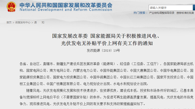 隨著風(fēng)電、光伏發(fā)電規(guī)?;l(fā)展和技術(shù)快速進(jìn)步,在資源優(yōu)良、建設(shè)成本低、投資和市場條件好的地區(qū),已基本具備與燃煤標(biāo)桿上網(wǎng)電價(jià)平價(jià)(不需要國家補(bǔ)貼)的條件。為促進(jìn)可再生能源高質(zhì)量發(fā)展,提高風(fēng)電、光伏發(fā)電的市場競爭力,現(xiàn)將推進(jìn)風(fēng)電、光伏發(fā)電無補(bǔ)貼平價(jià)上網(wǎng)的有關(guān)要求和支持政策措施通知如下。