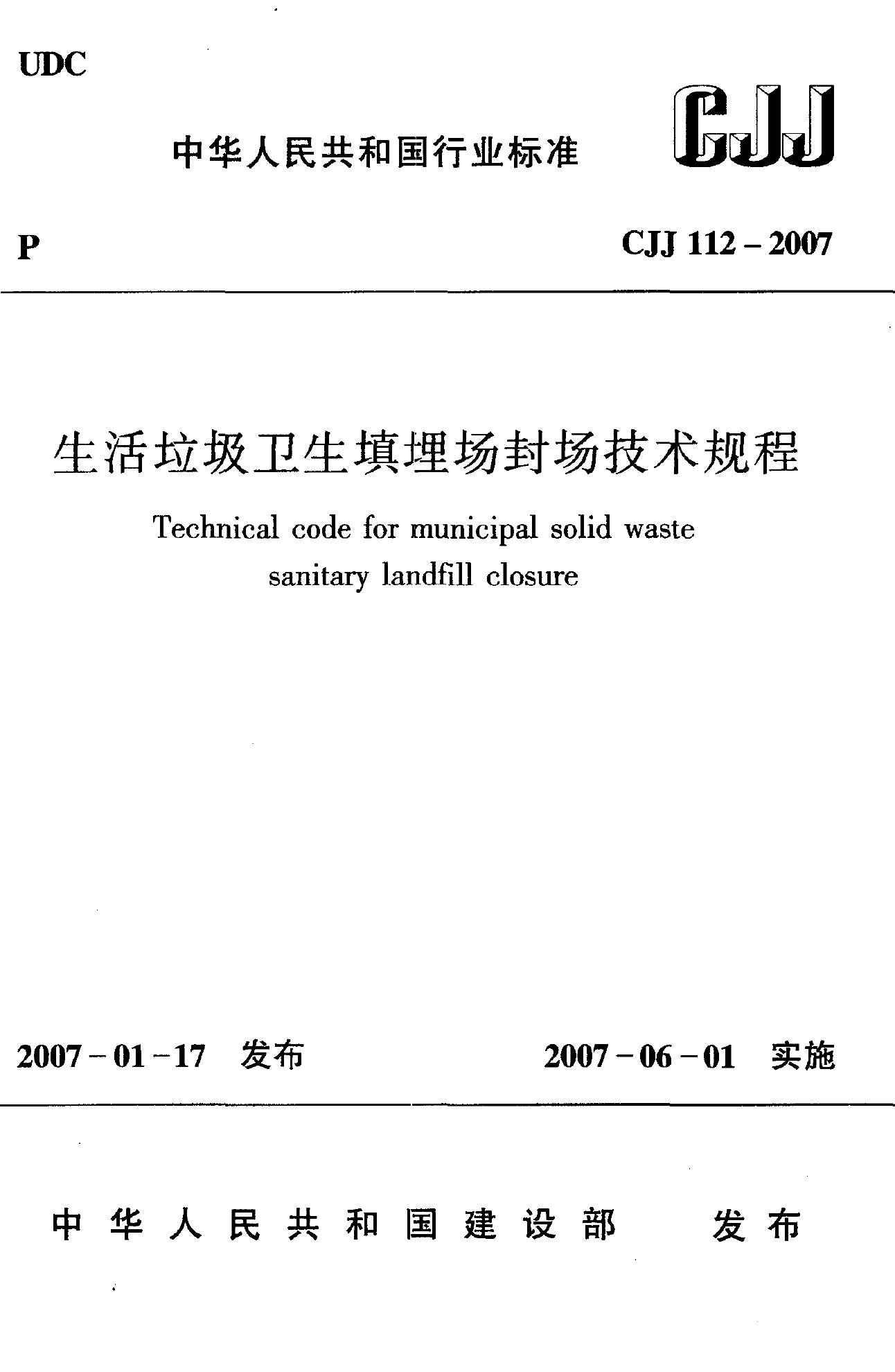 生活垃圾衛(wèi)生填埋場(chǎng)封場(chǎng)技術(shù)規(guī)程(CJJ 112-2007)