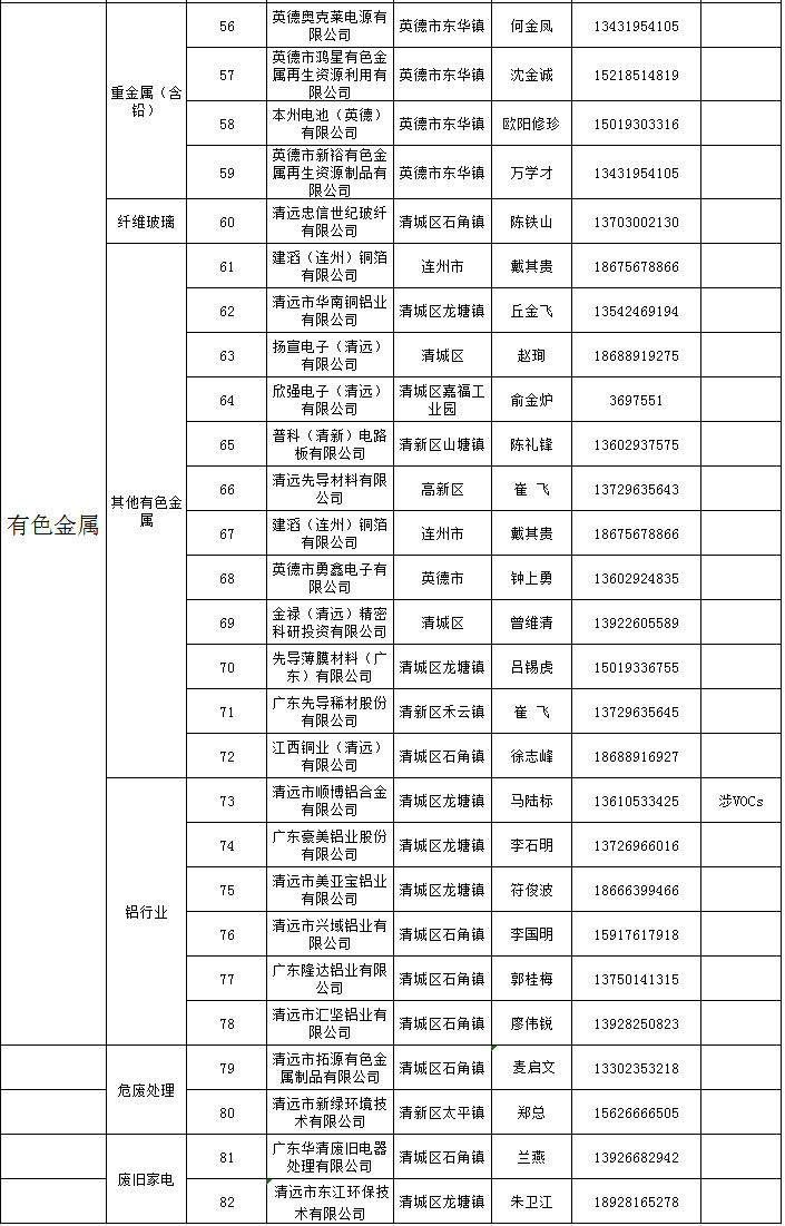 廣東省清遠市發(fā)布清遠市2019年重點排污單位。共有重點排污單位82家,涉及廢水、廢氣、有色金屬等。詳情如下:
