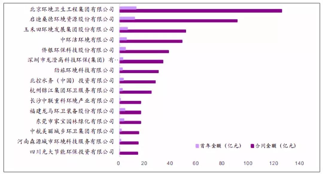 2018年上半年環(huán)衛(wèi)市場化中標合同金額TOP15