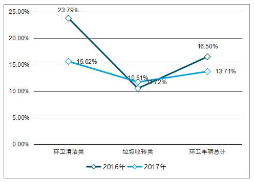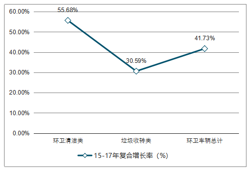 15-17年中國環(huán)衛(wèi)車復合增長率走勢