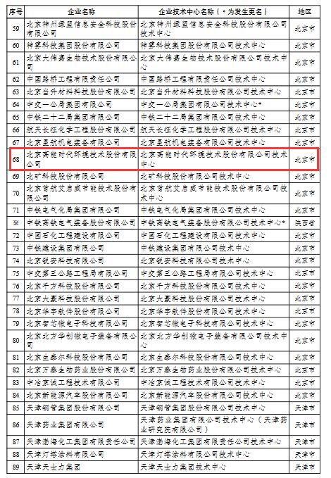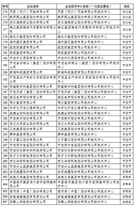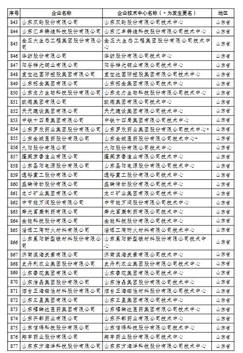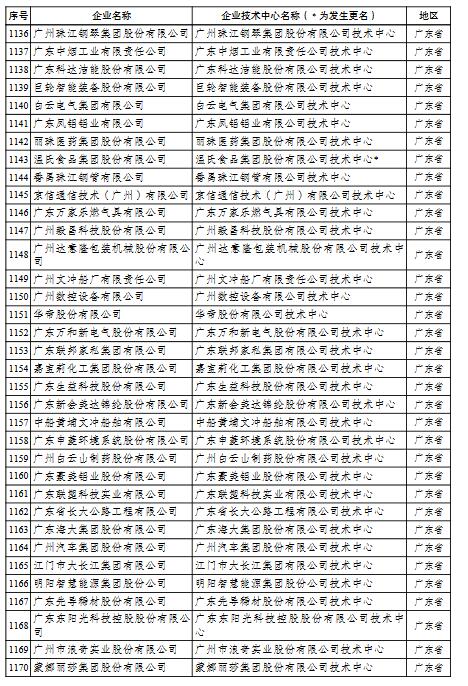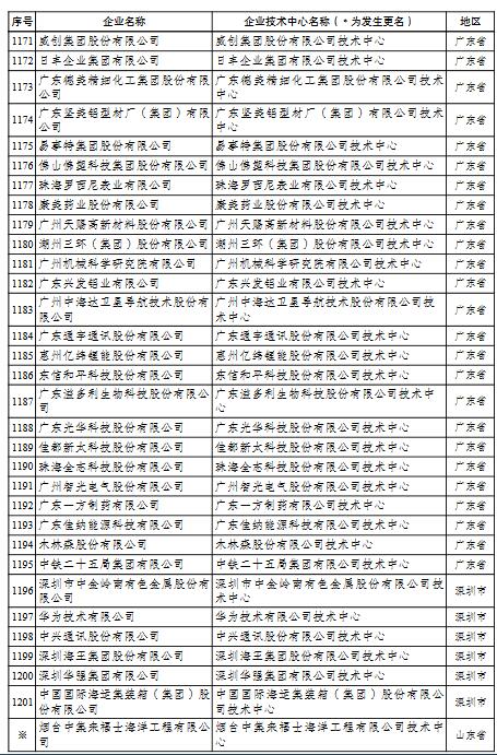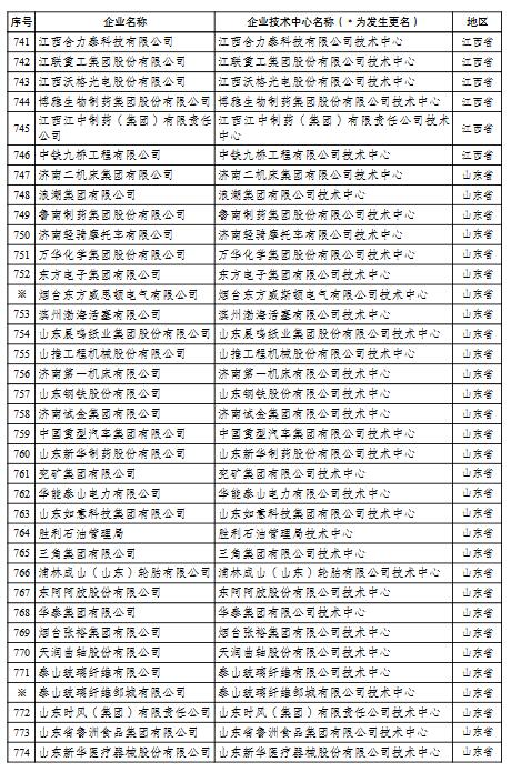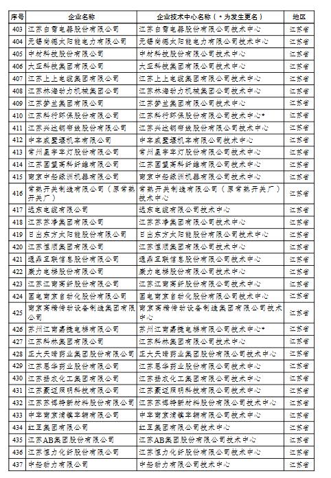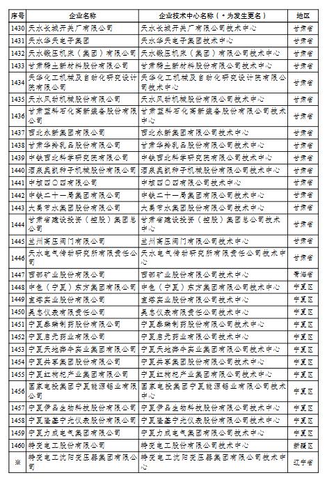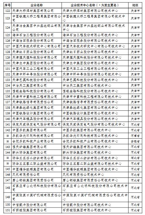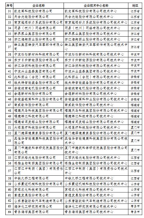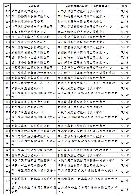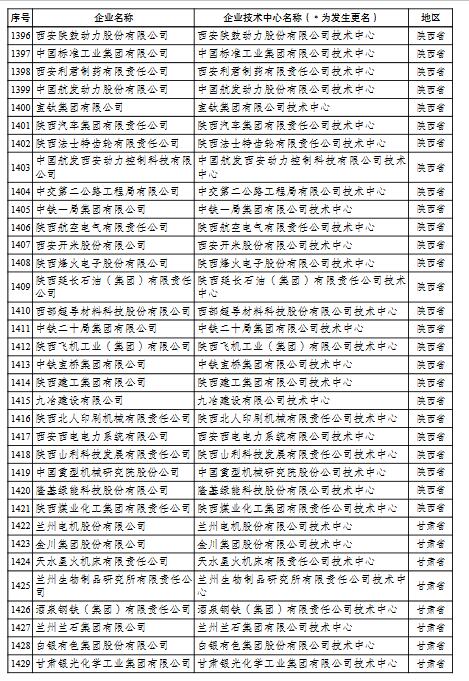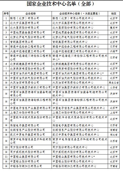 國家企業(yè)技術中心名單的通知
