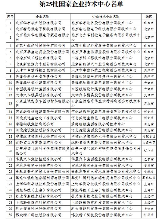 根據(jù)《國家企業(yè)技術中心認定管理辦法》,經(jīng)審定,現(xiàn)將第25批國家企業(yè)技術中心名單及全部國家企業(yè)技術中心名單通知如下。