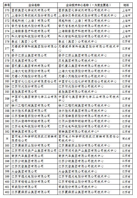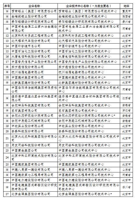 二、對41家所在企業(yè)名稱發(fā)生變更的國家企業(yè)技術中心及分中心予以相應更名,自所在企業(yè)更名之日(以工商行政管理機關核準的日期為準)起仍為國家企業(yè)技術中心及分中心。