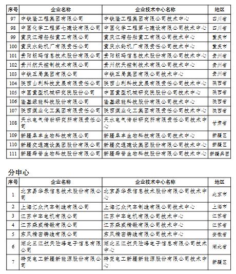 一、確認北京華宇軟件股份有限公司等111家技術中心、北京易華錄信息技術股份有限公司等7家分中心,自本通知發(fā)布之日起具有國家企業(yè)技術中心及分中心資格。