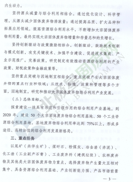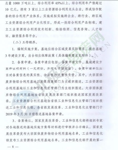 為落實《中華人民共和國經(jīng)濟和社會發(fā)展第十三個五年規(guī)劃綱要》《循環(huán)發(fā)展引領(lǐng)計劃》和《工業(yè)綠色發(fā)展規(guī)劃》,促進產(chǎn)業(yè)集聚,提高資源綜合利用水平,推動資源綜合利用產(chǎn)業(yè)高質(zhì)量發(fā)展,近日,國家發(fā)展改革委辦公廳和工業(yè)和信息化部辦公廳印發(fā)了關(guān)于推進大宗固體廢棄物綜合利用產(chǎn)業(yè)集聚發(fā)展的通知。全文如下: