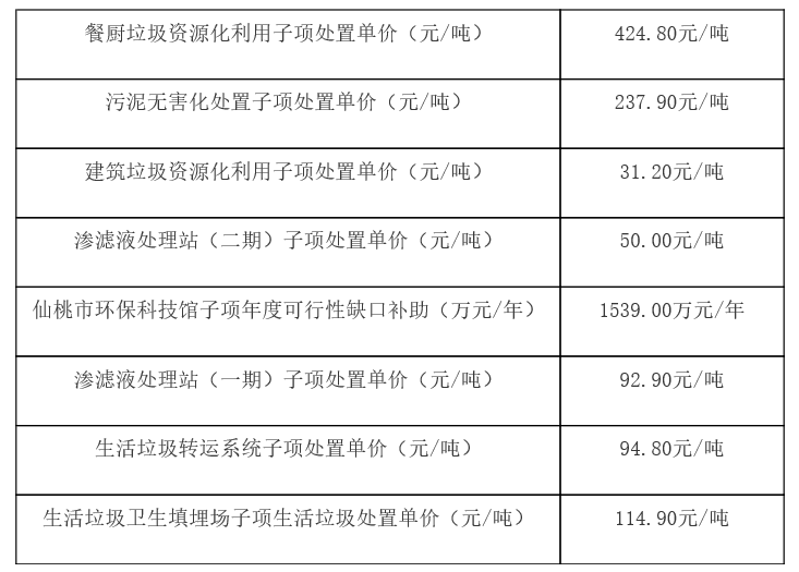 2019年1月11日,湖北仙桃循環(huán)經(jīng)濟(jì)產(chǎn)業(yè)園項(xiàng)目招標(biāo)工作落下帷幕,盈峰環(huán)境牽頭的、中聯(lián)環(huán)境和宇星科技發(fā)展(深圳)公司組成的聯(lián)合體斬獲此項(xiàng)目,總投資估算4.62億元,8個(gè)子項(xiàng)目中標(biāo)單價(jià)見(jiàn)下圖。