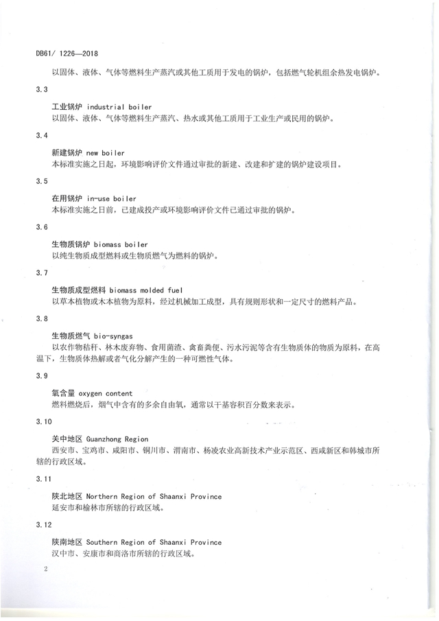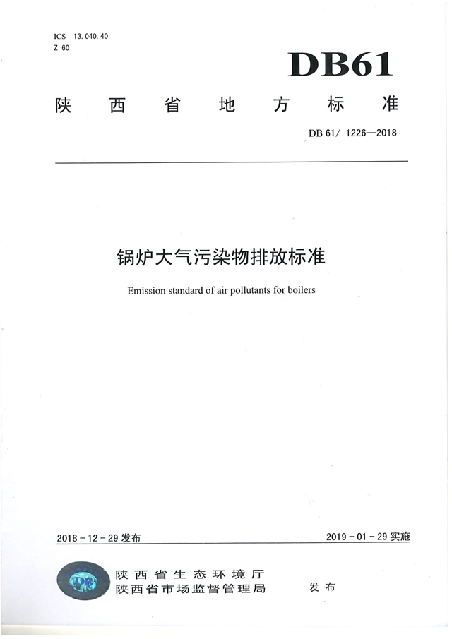 陜西省印發(fā)地方標(biāo)準(zhǔn)《鍋爐大氣污染物排放標(biāo)準(zhǔn)》DB 61/1226—2018。