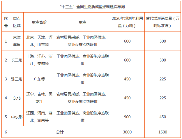 在具備資源和市場(chǎng)條件的地區(qū),特別是在大氣污染形勢(shì)嚴(yán)峻、淘汰燃煤鍋爐任務(wù)較重的京津冀魯、長三角、珠三角、東北等區(qū)域,以及散煤消費(fèi)較多的農(nóng)村地區(qū),加快推廣生物質(zhì)成型燃料鍋爐供熱,為村鎮(zhèn)、工業(yè)園區(qū)及公共和商業(yè)設(shè)施提供可再生清潔熱力。
