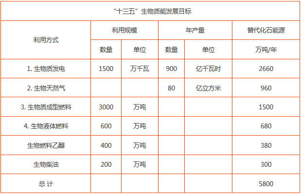 到2020年,生物質(zhì)能基本實(shí)現(xiàn)商業(yè)化和規(guī)?;?。生物質(zhì)能年利用量約5800萬噸標(biāo)準(zhǔn)煤。生物質(zhì)發(fā)電總裝機(jī)容量達(dá)到1500萬千瓦,年發(fā)電量900億千瓦時(shí),其中農(nóng)林生物質(zhì)直燃發(fā)電700萬千瓦,城鎮(zhèn)生活垃圾焚燒發(fā)電750萬千瓦,沼氣發(fā)電50萬千瓦;生物天然氣年利用量80億立方米;生物液體燃料年利用量600萬噸;生物質(zhì)成型燃料年利用量3000萬噸。