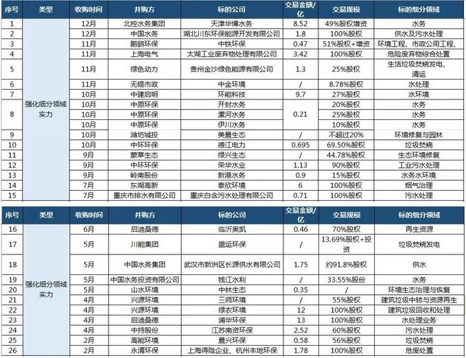 2018環(huán)保業(yè)外跨界并購(gòu)