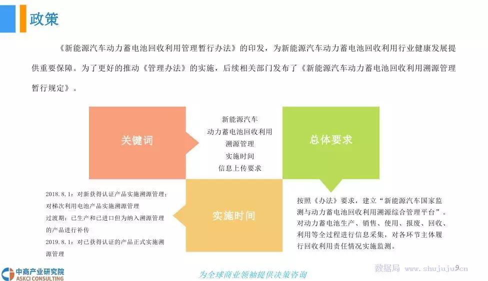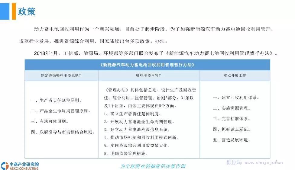近年來,國家陸續(xù)出臺(tái)利好政策,推動(dòng)新能源汽車動(dòng)力蓄電池回收利用,有利于環(huán)境保護(hù)和社會(huì)安全,推進(jìn)資源循環(huán)利用,有利于促進(jìn)我國新能源汽車產(chǎn)業(yè)健康持續(xù)發(fā)展,對(duì)于加快綠色發(fā)展,建設(shè)生態(tài)文明和美麗中國具有重要意義。