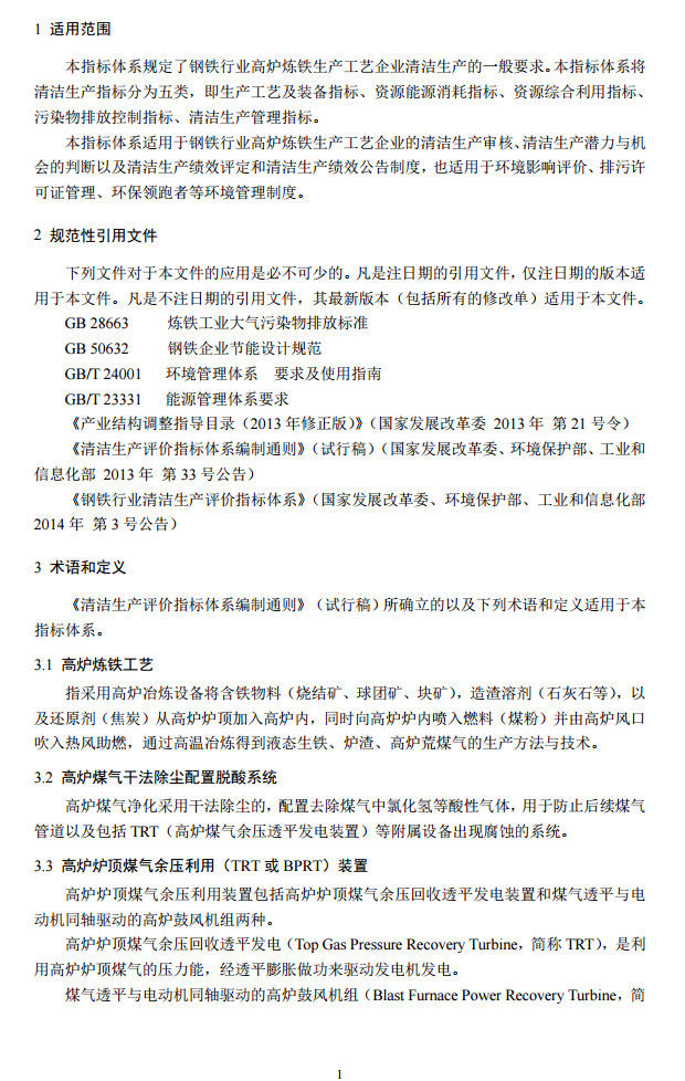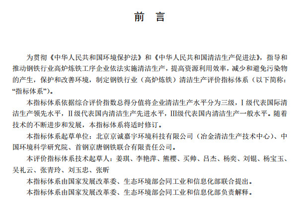 日前,國家發(fā)改委、生態(tài)環(huán)境部、工信部聯(lián)合印發(fā)了鋼鐵行業(yè)(高爐煉鐵)清潔生產(chǎn)評價(jià)指標(biāo)體系,規(guī)定了在高爐煉鐵工藝中有關(guān)大氣污染物的排放指標(biāo),包括顆粒物、二氧化硫、氮氧化物,其中高爐環(huán)境除塵及礦槽除塵配備有齊全的除塵裝置,確保無可見煙粉塵外逸。全文如下: