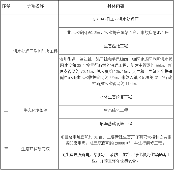 該子項項目總用地面積約31畝,主要新建生態(tài)環(huán)保研究大樓和公共服務(wù)配套用房。總建筑面積約20000㎡,并進(jìn)行裝修工程。同步建設(shè)強(qiáng)弱電、給排水、消防、道路、綠化和亮化等配套工程,并購置環(huán)保檢測設(shè)備。