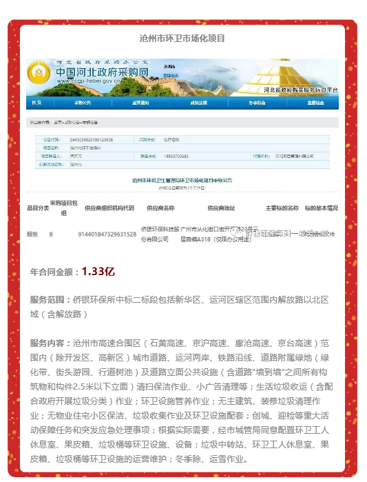 新年伊始,僑銀環(huán)保首戰(zhàn)告捷,憑借先進(jìn)的管理理念、良好的市場(chǎng)信譽(yù)、精湛的技術(shù)水平與合理的項(xiàng)目報(bào)價(jià),成功中標(biāo)滄州市環(huán)境衛(wèi)生管理局環(huán)衛(wèi)市場(chǎng)化項(xiàng)目(二標(biāo)段),實(shí)現(xiàn)新年“開門紅”。