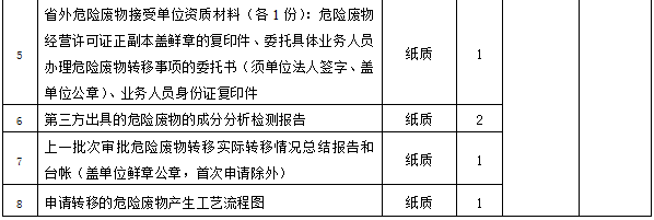 (一)危險廢物轉(zhuǎn)移跨省移出申請材料目錄