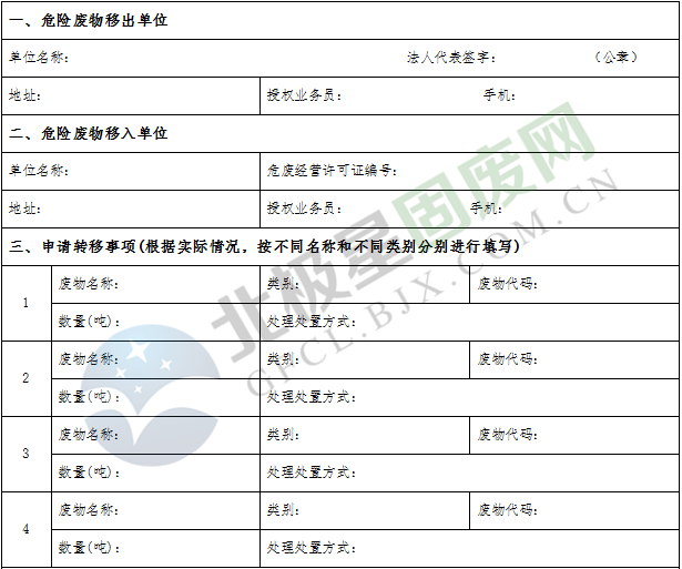 申請內(nèi)容:危險廢物轉(zhuǎn)移跨省審批許可。