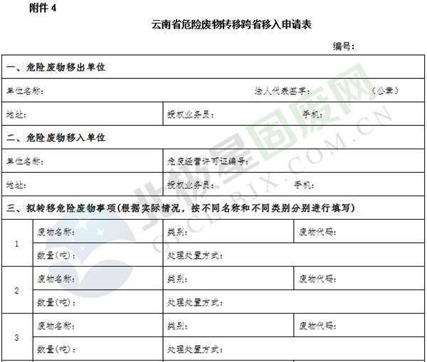 3.云南省危險廢物轉(zhuǎn)移跨省移入申請表