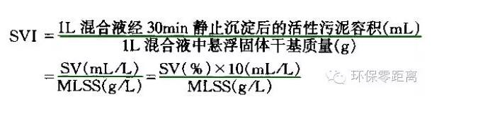 ?、谖勰囿w積指數(shù)(SVI)是指曝氣池出口處的混合液經(jīng)30min靜置沉淀后,1g干污泥所形成的沉淀污泥體積,其單位mL/g其計(jì)算為: