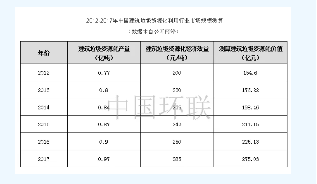 根據(jù)《循環(huán)發(fā)展引領(lǐng)行動(dòng)》,到2020年,城市建筑垃圾資源化處理率達(dá)到13 %。