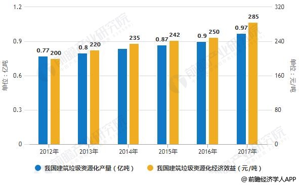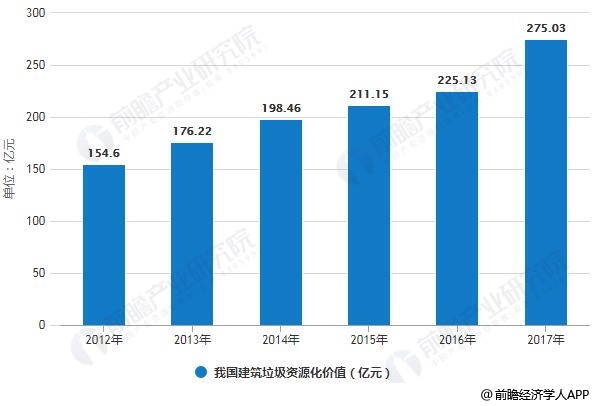 2012-2017年我國(guó)建筑垃圾資源化利用行業(yè)市場(chǎng)規(guī)模統(tǒng)計(jì)情況
