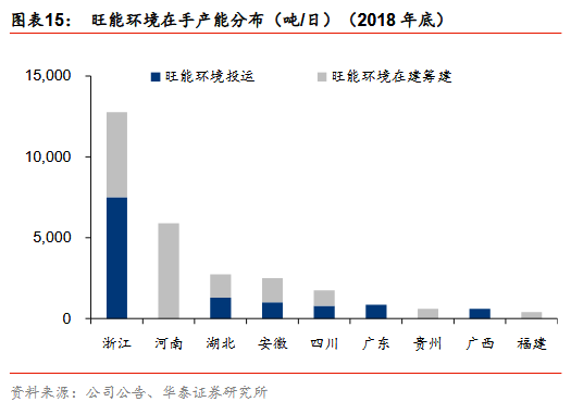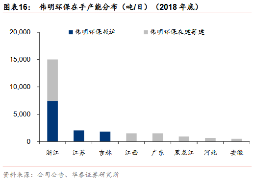 產(chǎn)能加速釋放:17年城市新增4.2萬(wàn)噸/日(2012-2016年均新增3.2萬(wàn)噸/日);17縣城投運(yùn)速度提速,我們估計(jì)17新增3.2萬(wàn)噸/日(十二五年均新增0.4萬(wàn)噸/日)。按照選取典型上市公司(18年已投運(yùn)產(chǎn)能市占率29%)投產(chǎn)規(guī)劃,18-20年累計(jì)投運(yùn)增速24%/24%/33% vs 按照十三五規(guī)劃測(cè)算18-20年累計(jì)投運(yùn)產(chǎn)能增速23%/19%/16%,上市公司投產(chǎn)增速高于行業(yè)增速,表明1)行業(yè)增速可能超預(yù)期或 ;2)上市公司已投運(yùn)市占率將提升。分區(qū)域:山東/上海/寧夏等省市提前完成十三五目標(biāo),廣東/北京/安徽/江蘇等19-20年仍具較大空間,中西部新增投運(yùn)崛起,東部部分地區(qū)仍有空間。