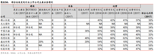 項(xiàng)目達(dá)產(chǎn)后主要收入來(lái)自發(fā)電收入,主要成本來(lái)自折舊、原材料和人工:首先假設(shè)該項(xiàng)目資金100%來(lái)自自有資金投資的情況下,則項(xiàng)目主要的收入、成本情況如下:1)收入:垃圾處置收入+發(fā)電收入。項(xiàng)目達(dá)產(chǎn)后,滿(mǎn)產(chǎn)狀態(tài)下可得出項(xiàng)目的年垃圾處理量,按照各個(gè)項(xiàng)目的垃圾處置費(fèi)(所列項(xiàng)目中最高為康恒寧波項(xiàng)目的149元/噸,最低為中國(guó)天楹延吉項(xiàng)目的58元/噸),則項(xiàng)目除增值稅后可測(cè)得年垃圾處置收入;按照0.65元/度的發(fā)電收入(部分項(xiàng)目比如康恒寧波項(xiàng)目、綠色動(dòng)力永嘉、綠色動(dòng)力海寧項(xiàng)目為0.66元/度),結(jié)合各項(xiàng)目噸垃圾發(fā)電量(所列項(xiàng)目中最高為綠色動(dòng)力海寧項(xiàng)目的410度/噸,最低為中國(guó)天楹延吉項(xiàng)目的280度/噸),結(jié)合個(gè)項(xiàng)目的上網(wǎng)比例(79%-85%之間),可測(cè)得扣除增值稅后年垃圾發(fā)電收入;可以看出,噸垃圾處置費(fèi)和噸垃圾發(fā)電量是決定收入端的主要變量。2)成本:以中國(guó)天楹延吉項(xiàng)目為例,根據(jù)其非公開(kāi)發(fā)行報(bào)告書(shū)披露,成本構(gòu)成中折舊占比47%(天楹按照資產(chǎn)預(yù)計(jì)使用壽命與該BOT項(xiàng)目特許經(jīng)營(yíng)權(quán)協(xié)議規(guī)定的經(jīng)營(yíng)期孰低確定,基本上折舊年限在20年)、原材料占比20%、工資及福利占比15%、維護(hù)費(fèi)用(考慮大修、年修及日常維護(hù)費(fèi)用)占比11%、污水及爐渣處置占比7%。總體來(lái)看,成本端中折舊攤銷(xiāo)、原材料和人工占比在80%左右。